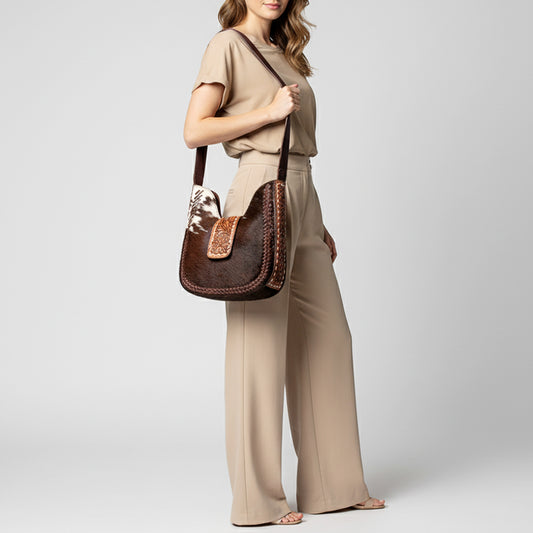 LC-ADBGZ486 Hobo Hand Tooled Hair-On Genuine Leather Women Bag Western Handbag Purse