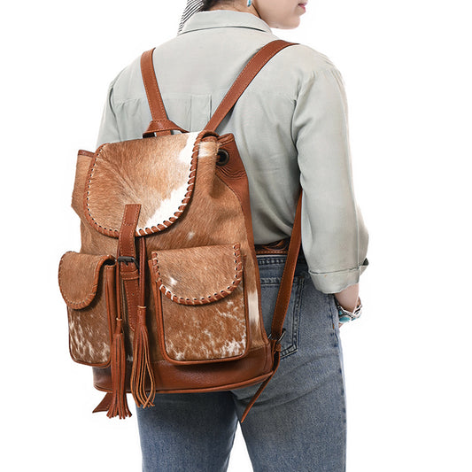ADBG1597 Genuine Cowhide Leather Backpack Bag with Front Zip Pocket - Western Travel Tote