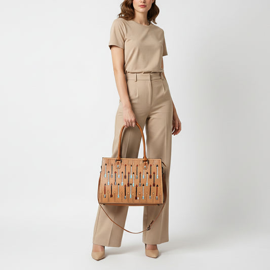 ADBG1595 Western Leather Tote Bag - Multicolor Arrow Tooling Design