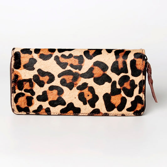 LC-ADBGZ586 Hair-On Cowhide Leopard Print Zip Wallet - Western Exotic Hide Clutch