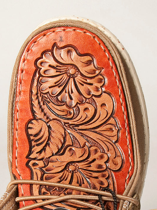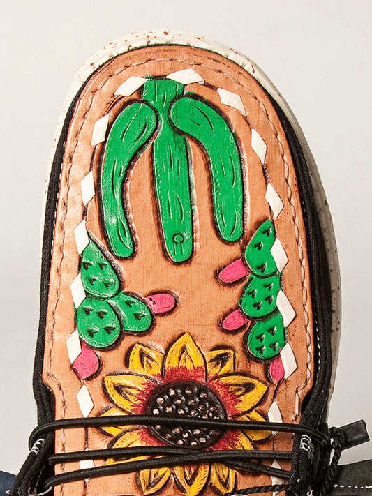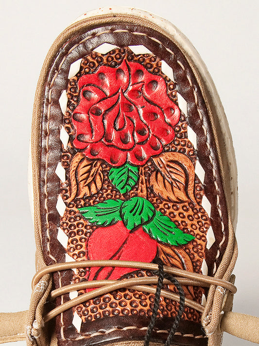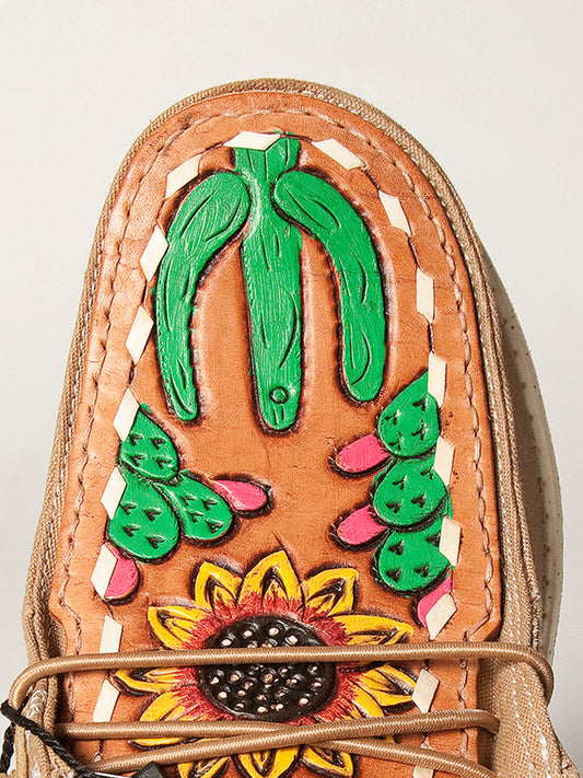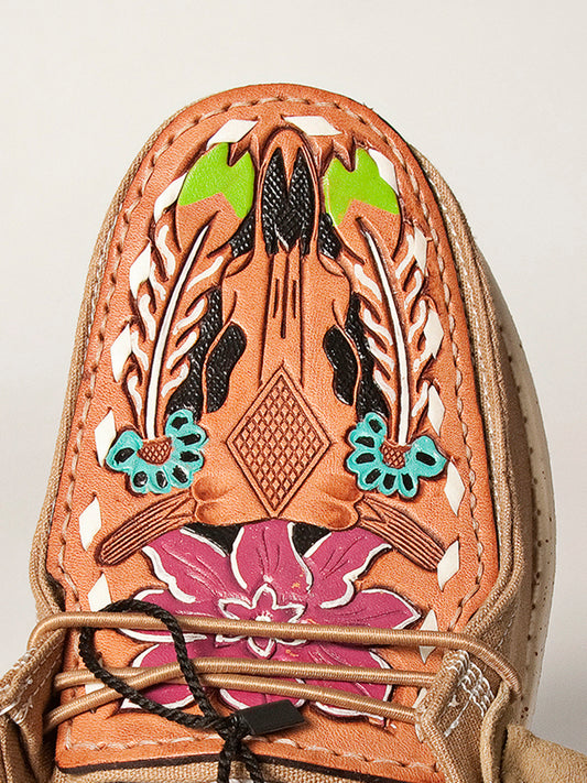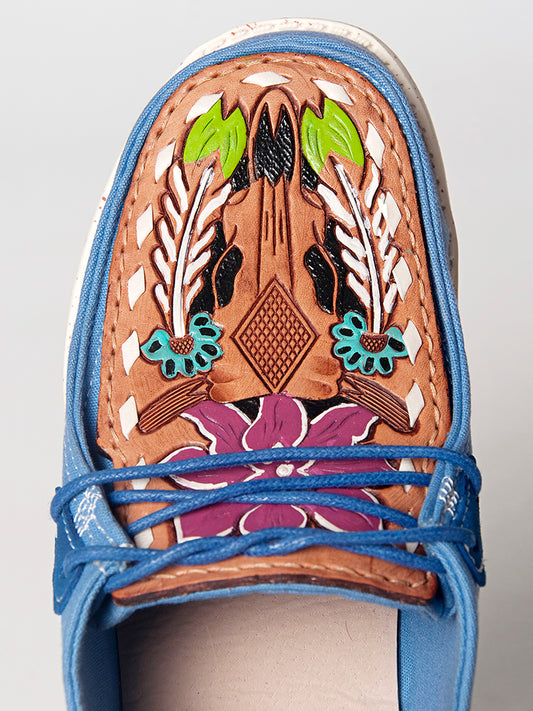 LC-ADFT133BR2 Women's Floral & Feather Tooled Leather Canvas Loafers - Multicolor Western Slip-On