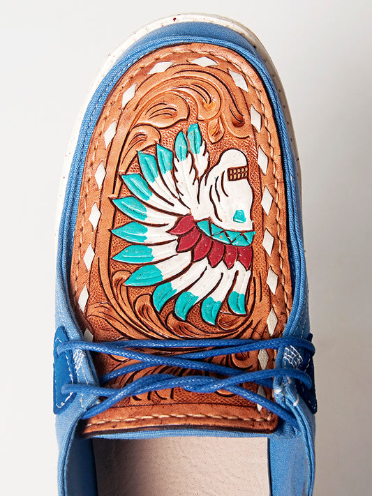 LC-ADFT133BK3 Women's Feather Tooled Leather Canvas Loafers - Western Casual Slip-On