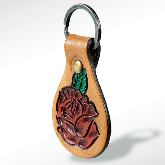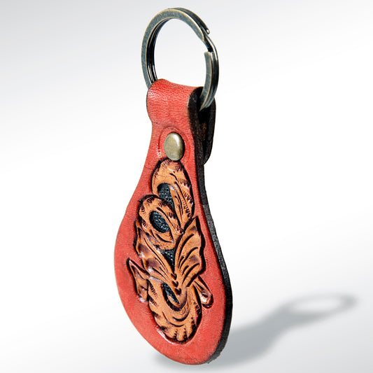 LC-ADKR155 Tooled Leather Keychain Red Flower Design