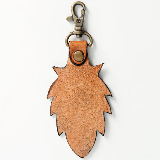 LC-ADKR159 Tooled Leather Feather Keyring warm brown Western Leaf Shape