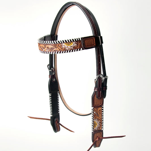 LC-ADSH018 Women's Western Denim Shirt with Hand-Tooled Leather Sunflower Yoke