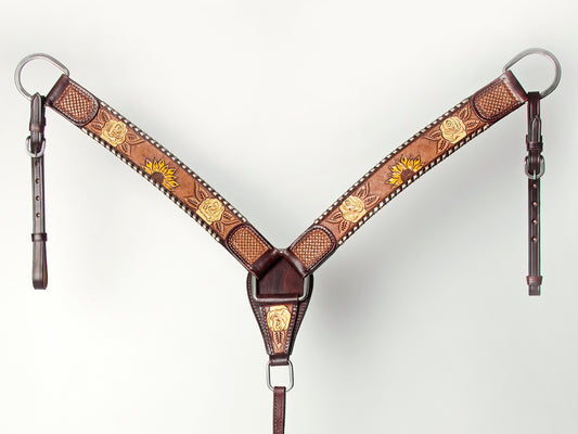 LC-ADSH013 Light Denim Western Shirt with Sunflower Tooled Leather Yoke Women s