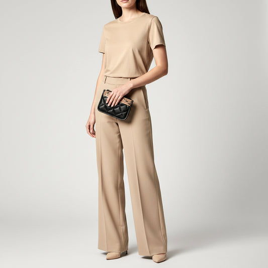 ADBG1666 Black Quilted Half-Moon Taco with Tooled Leather Trim