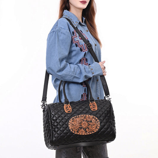 ADBG1679 Quilted Leather Crossbody Bag with Floral Tooled Border - American Darling