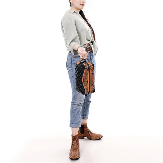 ADBG1675 Western Hand-Tooled Leather Toiletry Bag - Travel Dopp Kit by American Darling