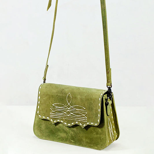 ADBG1692 Distressed Leather Crossbody Bag with White Whipstitch Embroidery - Western Style