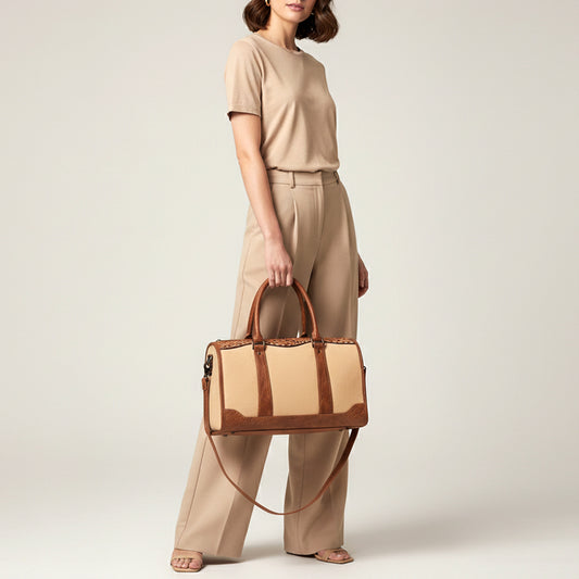 ADBG1697 Western Canvas Duffel Bag with Tooled Leather Accents