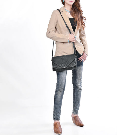 ADBG1712 Genuine Leather Wallet Bag with White Western Stitching & Adjustable Strap