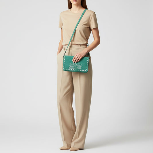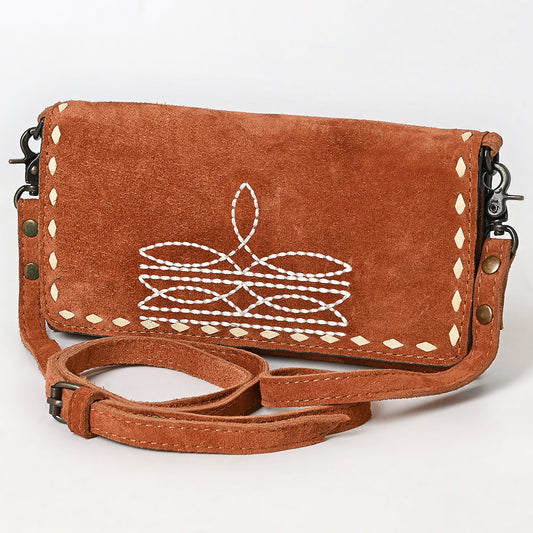 ADBG1717 Genuine suede Leather Wallet Bag with White Western Stitch Embroidery
