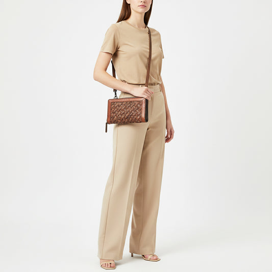 ADBG1716 Hand-Tooled Genuine Leather Crossbody Wallet with Adjustable Strap