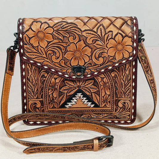 ADBG1883 Sling Hand Tooled Saddle Blanket Genuine Leather Women Bag