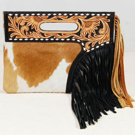 ADBG1893 Clutch Hand Tooled Hair on Genuine Leather Women Bag