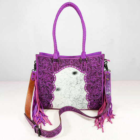 ADBG1889 Tote Pink Hand Tooled Hair on Genuine Leather Women Bag