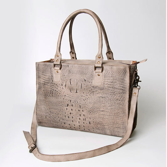 ADBG235 Genuine Crocodile Leather Tote Bag with Hand-Stitched Details & Adjustable Strap