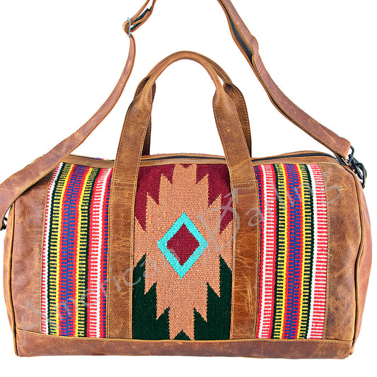 ADBG254 Southwestern Wool and Leather Duffel Bag with Colorful Woven Panels