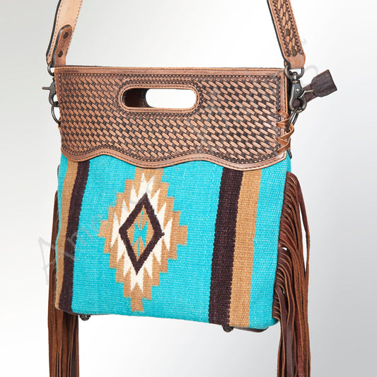 ADBG243 Southwestern Wool and Tooled Leather Fringe Bag with Cutout Handle