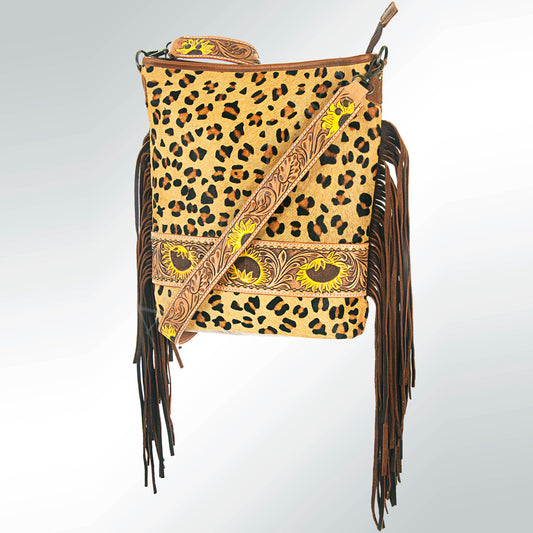 ADBG316 Hair-On Cowhide & Tooled Leather Western Large Crossbody Bag Fringe Crossbody