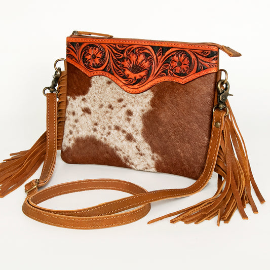 ADBG404 Cowhide Crossbody Bag with Tooled Leather Floral Yoke & Fringe