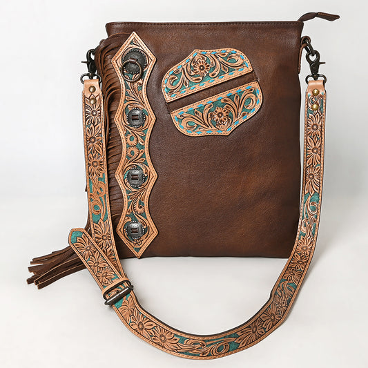 ADBG469 Western Chaps Bag-Hand Tooled Inspired Cowhide & Leather Crossbody Bag Fringe Edition