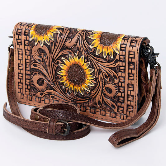 ADBG485 Floral Hand Tooled Leather Organizer Bag Belle Western Crossbody by American Darling
