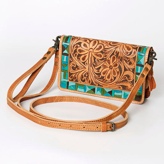 ADBG485 Tooled Leather Organizer Bag Western Crossbody by American Darling