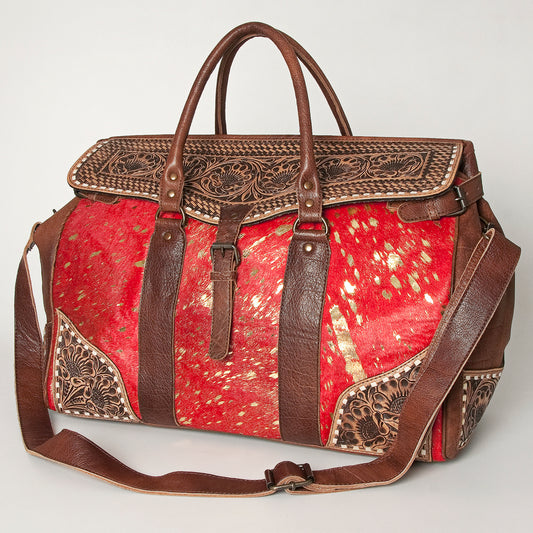 ADBG516Q Leopard Print Cowhide and Tooled Leather Western Duffle Bag