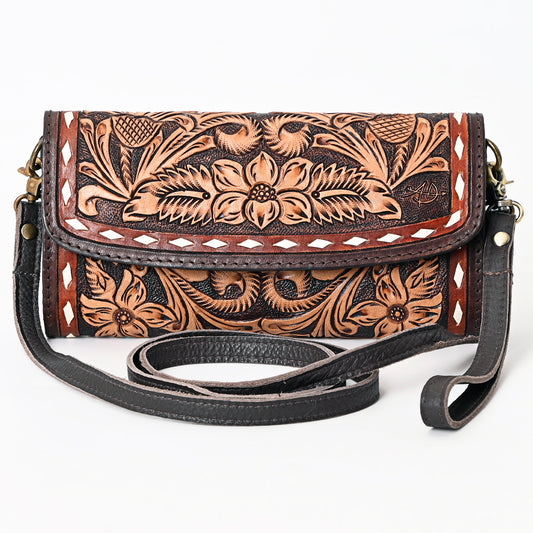 ADBGA356 Hand-Tooled Full Leather Western Crossbody Bag Floral Pattern & Buckle Strap