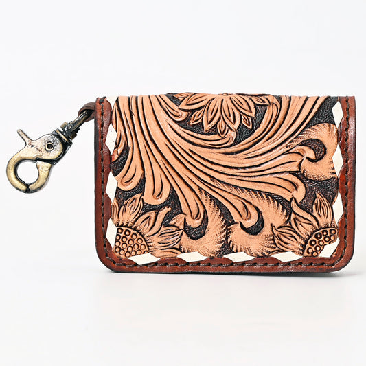ADBGA406 Hand-Tooled Leather Keychain Wallet Western Floral Design