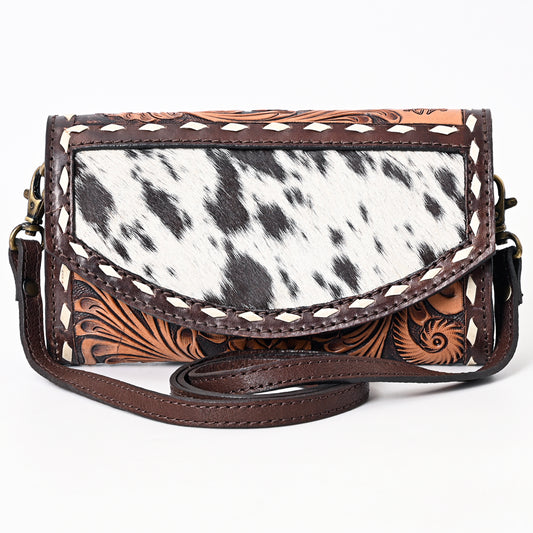 ADBGA384 Hair-On Hide & Tooled Leather Western Wallet Crossbody with Whipstitch Detail