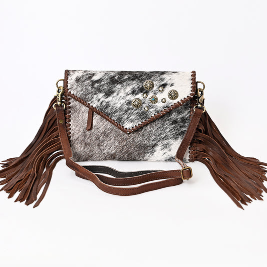 ADBGA388 Hair-On Cowhide Western Fringe Crossbody with Concho Accents
