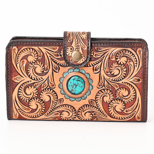 ADBGA397 Tooled Leather Wallet with Turquoise Stone Concho Western Clutch