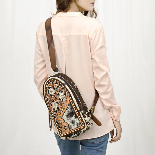 ADBGA548 American Darling Genuine Cowhide & Tooled Leather Sling Bag Western Crossbody Backpack