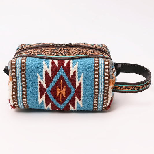 ADBGA555 Western Toiletry Bag with Hand-Tooled Leather & Southwestern Woven Fabric