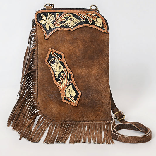 ADBGA540 American Darling Hand Tooled Leather Crossbody Bag with Multi-Tone Fringe & Western Floral Design