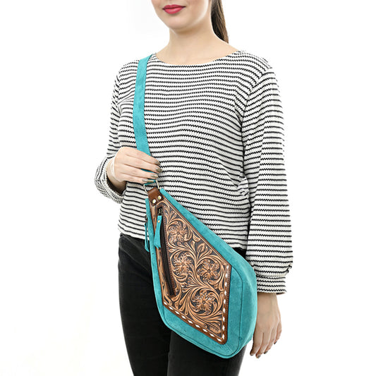 ADBGA578 Turquoise Genuine Leather Sling Bag Hand-Tooled Western Design