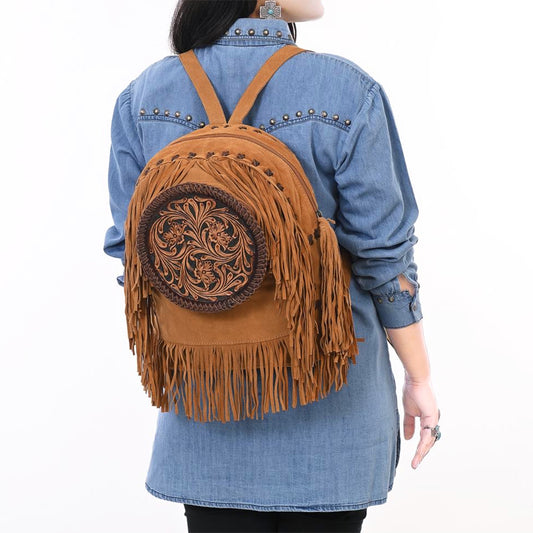 ADBGA624 Cowhide Crossbody Backpack with Sunflower Tooled Leather & Fringe Tassel