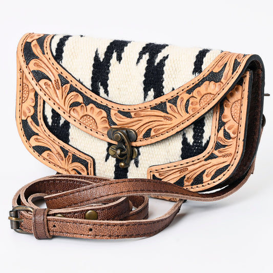 ADBG1097 American Darling Western Leather Wallet Hand Bag with Woven Saddle Blanket