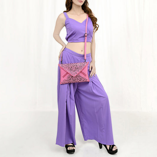 ADBG1109 American Darling Hand-Tooled Genuine Pink Leather Western Envelope Bag Floral Carved Crossbody