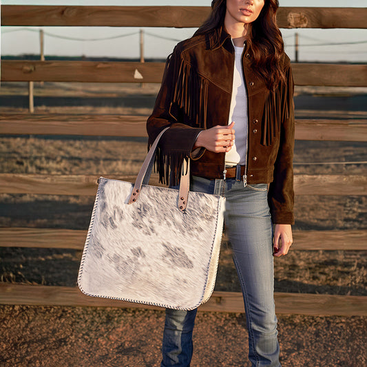 ADBG111 American Darling Hair-On Cowhide Genuine Leather Western Tote Bag Handcrafted Large Carryall