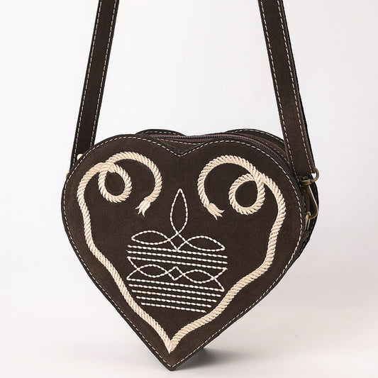 ADBGA688 Genuine suede Heart-Shaped Crossbody Canteen Bag with Western Rope Embroidery