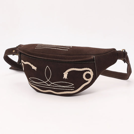 ADBGA668 Western Genuine suede Belt Bag with Rope Embroidery-Rodeo Waist Pack