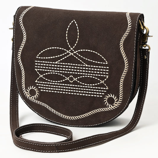 ADBGA684 Genuine suede Western Crossbody Bag with White Rope Embroidery