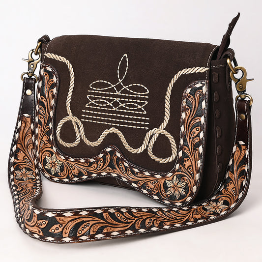 ADBGA687 Western Crossbody Flap Bag with Tooled Leather Strap & Rope Stitch Embroidery