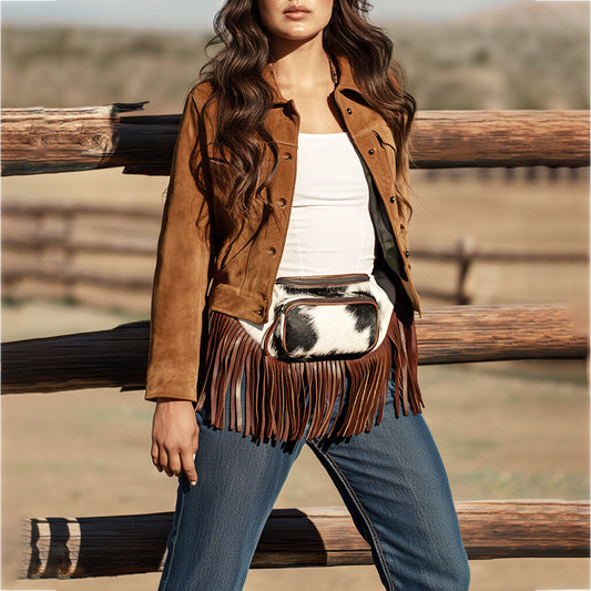 ADBG1124 American Darling Handcrafted Western Leather Fanny Pack with Hair-On Cowhide & Fringes