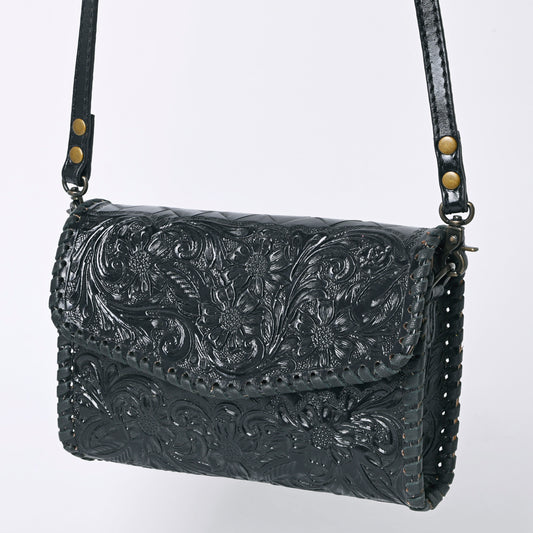 ADBG1125 American Darling Handcrafted Western Leather Sling Bag with Floral Carved Design & Saddle Blanket Detail