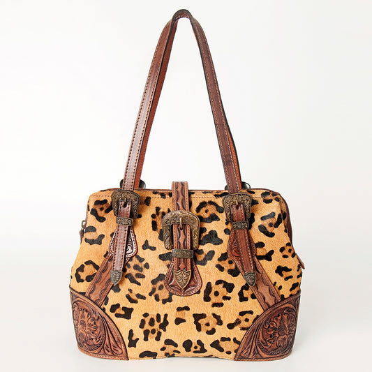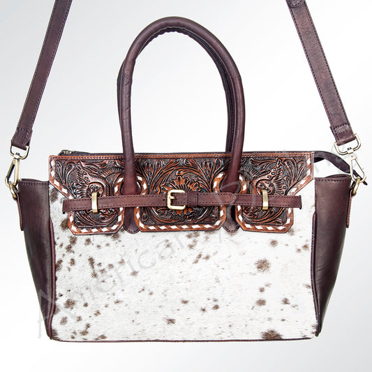 ADBGI183 Hair On Western Satchel - Tooled Leather Cowgirl Purse with Buckles
